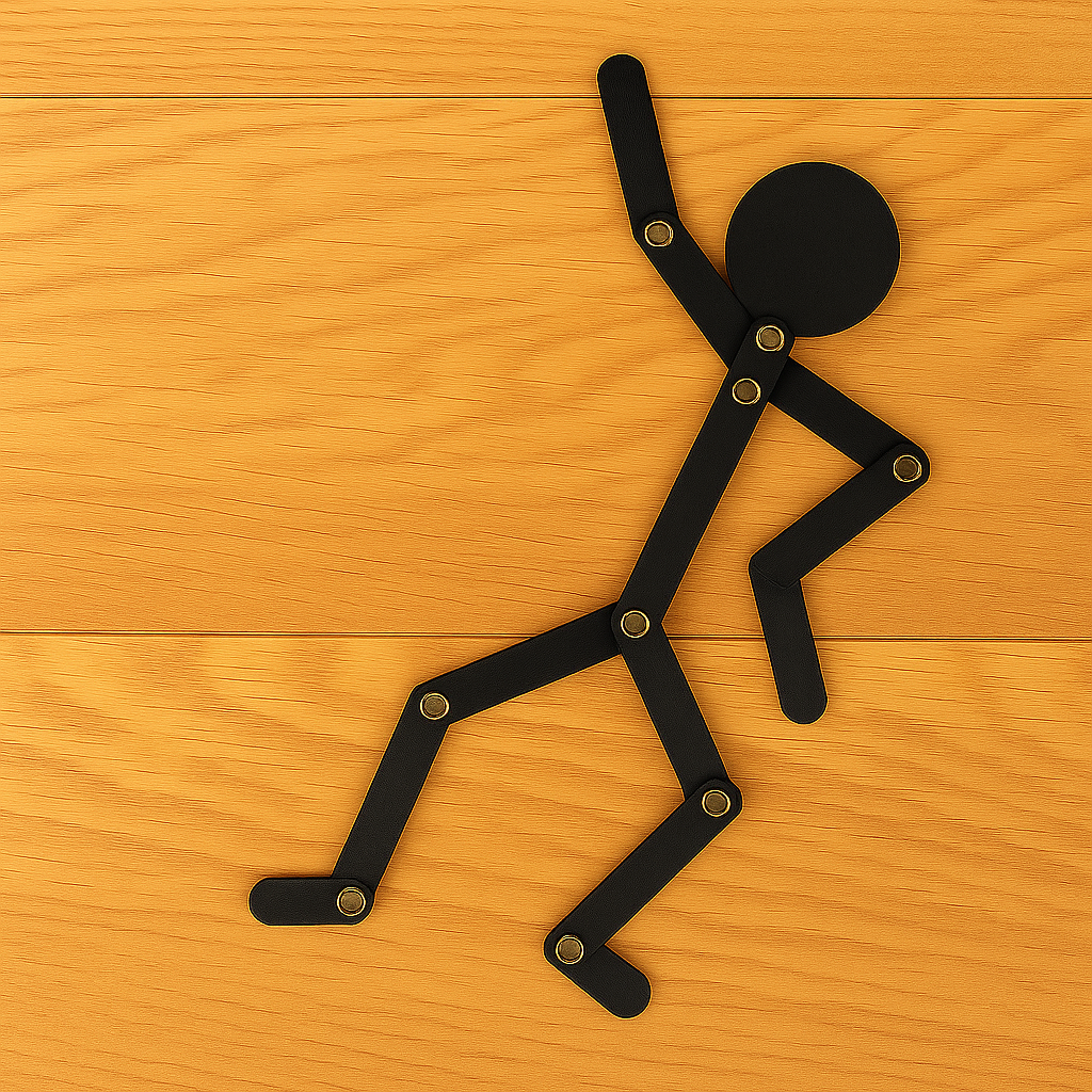 Dziecko losuje kartę, a następnie układa ludzika w takiej samej pozycji - może to być bieg, skok, yoga, taniec czy ćwiczenia gimnastyczne. To doskonały sposób na: