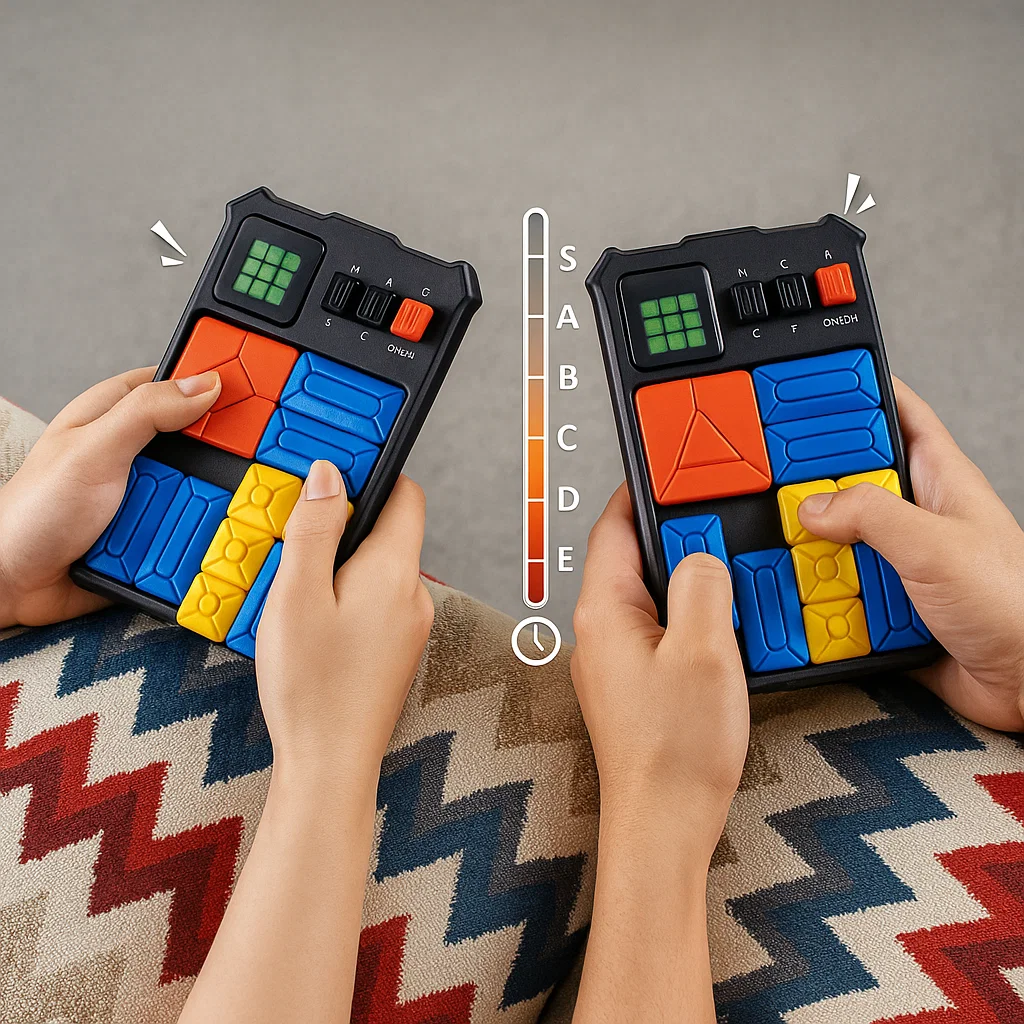 Natürlich! Ihr könnt gemeinsam nach Lösungen suchen oder um die Wette konkurrieren, wer den roten Block am schnellsten lösen kann.